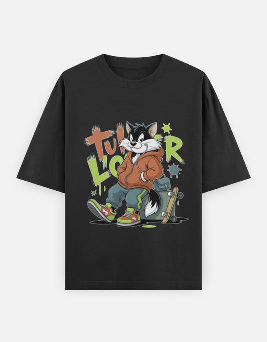 Black Cat Oversized Tee